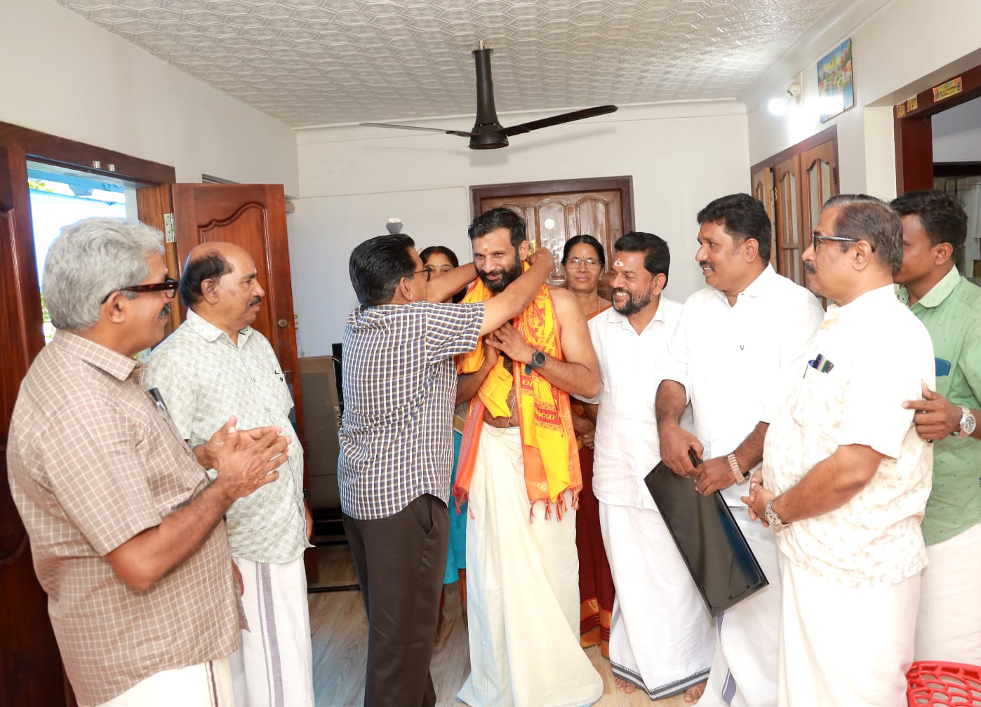ഇരിങ്ങാലക്കുട : ശബരിമലയിലെ നിയുക്ത മേൽശാന്തി ഏറന്നൂർ മനയിൽ ഇ.ഡി. പ്രസാദ് തിരുമേനിയെ മുകുന്ദപുരം താലൂക്ക് എൻഎസ്എസ് ഭാരവാഹികൾ അദ്ദേഹത്തിൻ്റ വസതിയിൽ ചെന്ന് ആദരിച്ചു.