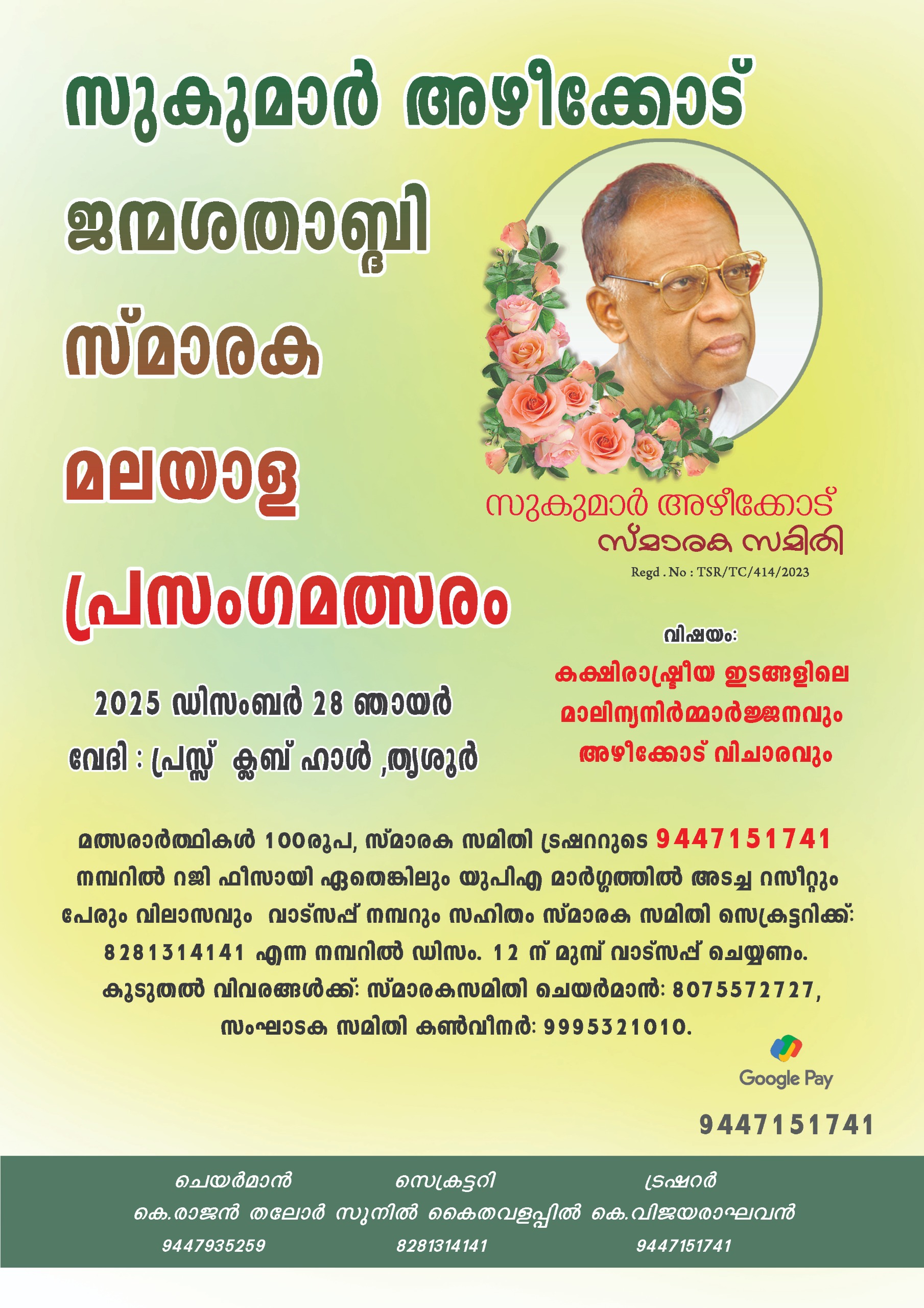 പൂമംഗലം പഞ്ചായത്ത് മുൻ പ്രസിഡന്റ് അഡ്വ ജോസ് മൂഞ്ഞേലി മുഖ്യ പ്രഭാഷണം നടത്തി.