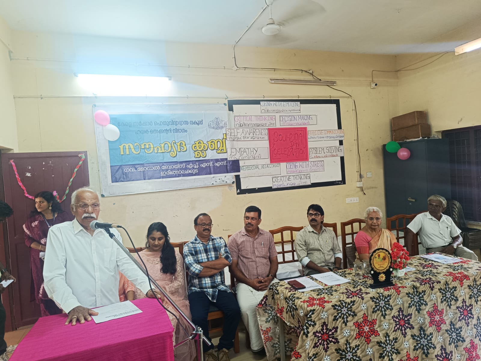 ചടങ്ങിൽ പ്രിൻസിപ്പൽ എം.കെ. മുരളി, സൗഹൃദ ക്ലബ് കോർഡിനേറ്റർ എം.ടി. സിന്ധു, സീനിയർ അസിസ്റ്റന്റ് വി.ആർ. സോണി, സ്റ്റാഫ് സെക്രട്ടറി സി.പി. ഷാജി, പൂർവ്വ വിദ്യാർഥി പി. ഭരത്കുമാർ എന്നിവർ പ്രസംഗിച്ചു.