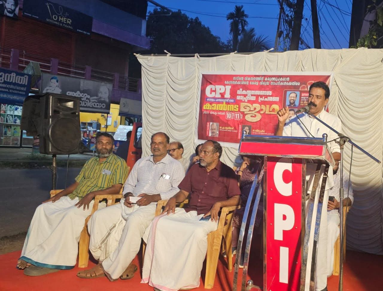 ഇരിങ്ങാലക്കുട : സി പി ഐ കാറളം പഞ്ചായത്ത് വികസന സന്ദേശ രാഷ്ട്രീയ പ്രചരണ കാൽനടജാഥ സമാപന സമ്മേളനം ജില്ലാ സെക്രട്ടറി കെ.ജി ശിവാനന്ദൻ ഉദ്ഘാടനം ചെയ്തു.