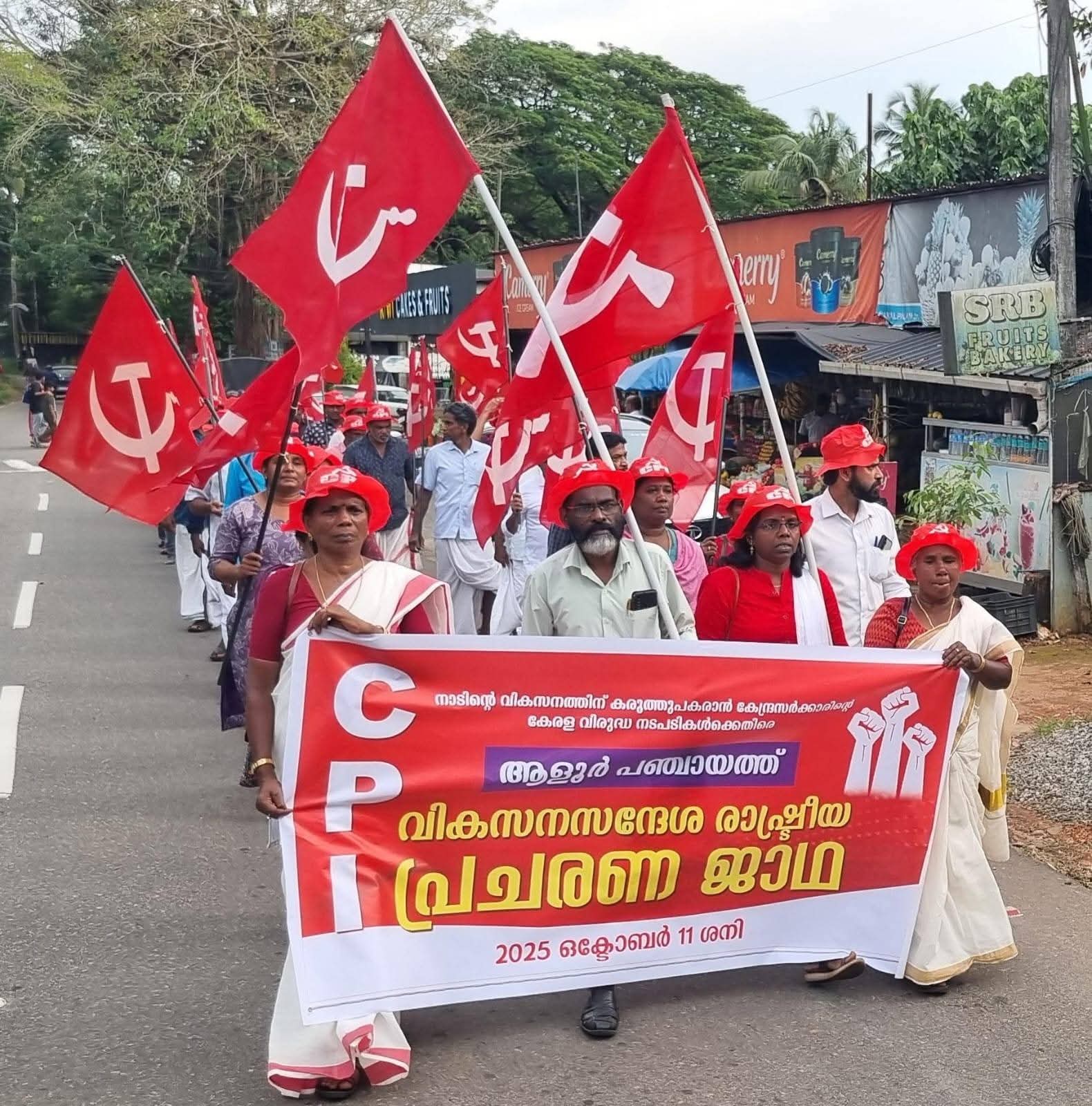 ഇരിങ്ങാലക്കുട : സി പി ഐ ആളൂർ പഞ്ചായത്ത് വികസന സന്ദേശ കാൽനട ജാഥ സി പി ഐ ജില്ലാ എക്സിക്യൂട്ടീവ് അംഗം പി. മണി ഉദ്ഘാടനം ചെയ്തു.